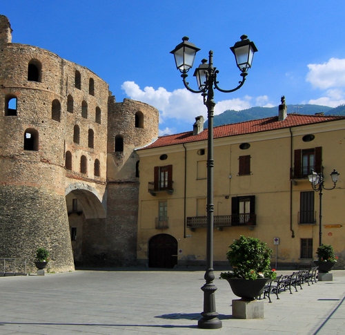 Tag: lampione, piazza, castello, panchine, finestre, vaso, rocca, balcone, fiori.