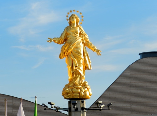 All’interno del sito dell’Expo – vicino all’ingresso e al Padiglione Zero, tra il padiglione Irlanda e quello della Caritas – è esposta al pubblico una copia a grandezza naturale della Madonnina, la statua in rame dorato, creata dallo scultore italiano Giuseppe Perego nel 1774, che si trova in cima al Duomo di Milano ed è uno dei più noti simboli della città. La copia, realizzata dalla Fonderia Del Giudice di Nola in collaborazione con la Veneranda Fabbrica del Duomo (l’impresa che da più di sette secoli si occupa della conservazione del monumento), è in bronzo, dorata all’esterno, alta 4,16 metri ed è stata realizzata con la tradizionale tecnica della fusione a cera persa da una scansione ad alta precisione in 3D della Madonnina originale. In questo modo i visitatori possono osservare per la prima volta da vicino i dettagli della statua, cosa impossibile con l’originale data la sua posizione sulla sommità delle guglie del Duomo: per raggiungere la replica della Madonnina i visitatori di Expo devono salire una scalinata che riproduce l’ascesa alle terrazze del Duomo.