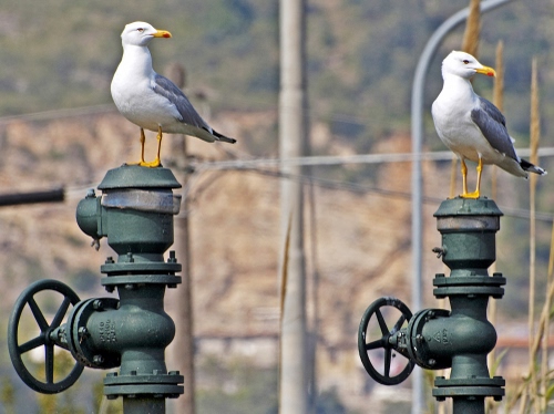 Tag: due, gabbiani, uccelli, animali, tubi, giallo, becco.