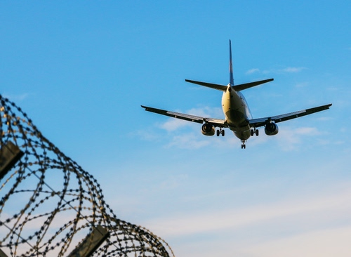 Tag: aereo, cielo, ali, nuvole, spinato, filo, aeroplano, coda, recinzione, volo, rete, ruote, atterraggio, carrello, azzurro, motori.