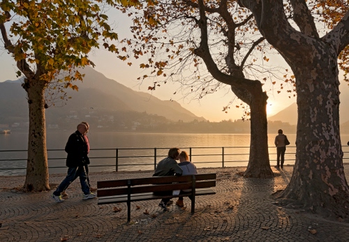 romantico tramonto sul lungolago di lecco