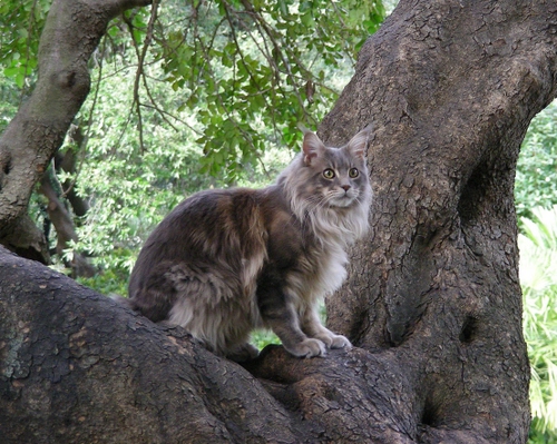 Tag: gatto, albero, foglie, verde, pelo, rami, grigio, tronco, animale, occhi, micio, zampe, orecchie, bianco, muso.