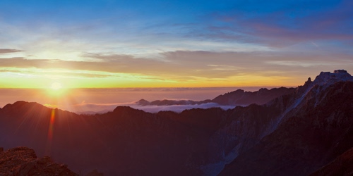 Comune di Stazzema - Tramonto sul Mar Tirreno da passo Croce (1050 metri slm), sulla destra si riconosce il monte Altissimo con la famosa cava di marmo delle Cervaiole, davanti a noi sotto le nuvole Forte dei Marmi.