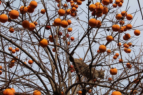 Tag: rami, gatto, cachi, albero, frutta, arancione, cielo, frutti, pianta, autunno, animale.
