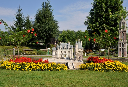 Tag: fiori, castello, alberi, giallo, prato, verde, giardino, rosso, aiuola, aiuole, erba, miniature, cielo, torre.