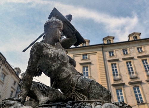 Torino - Piazza del Municipio - Monumento a Amedeo VI di Savoia detto il conte Verde ed il Moro - scultore Pelagio Pelagi