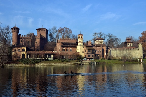 Tag: castello, fiume, canoa, torri, acqua, cielo, torino, borgo, riflessi, alberi, riflesso.