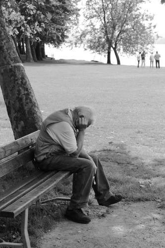 Tag: panchina, vecchio, albero, alberi, bianconero, uomo, persone, prato, tronco, pensieri, anziano.