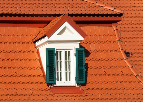Tag: tetto, abbaino, persiane, finestra, tegole, verde, bianco.
