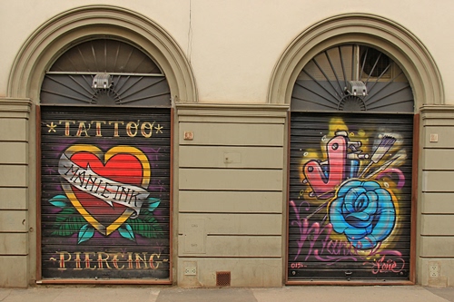 3° Edicola fiorentina con serrande "graffittate" | 192° Serranda con pubblicità |