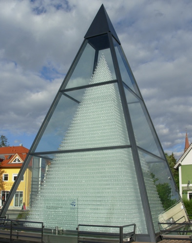 A Zwiesel, in Baviera, davanti la fabbrica di bicchieri si trova questa piramide da record, realizzata con 93.665 calici posti uno sull'altro.