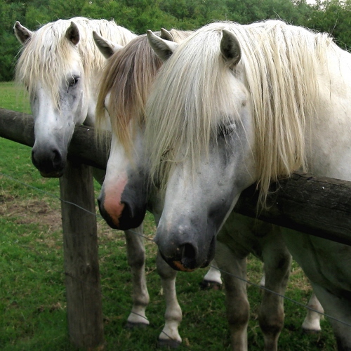 Tag: tre, cavalli, staccionata, criniera, animali, erba, criniere, verde, bianchi, bianco.