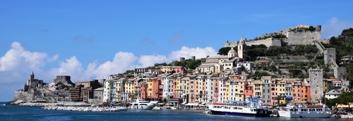 Panorama di Portovenere vista dal mare.