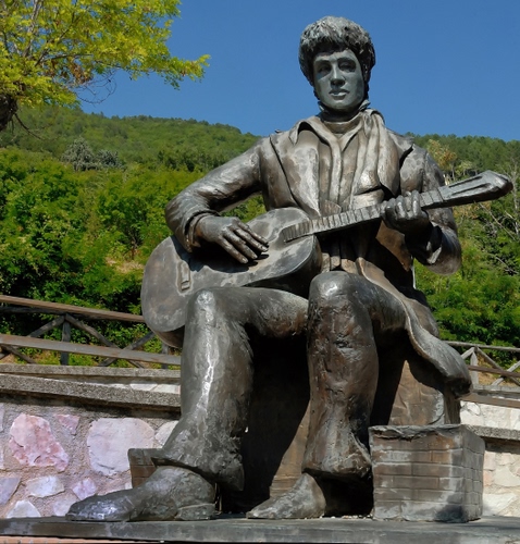 Tag: chitarra, statua, monumento, alberi, musicista, verde, bronzo, scultura.