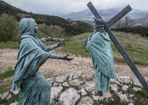 Altri tag (senza riscontro): piante, cespugli, crucis, tunica, via, sacro, crocifissione, grigio, maria, ferro, devozione, mantello, scultura, passione, statua, fede, pasqua, sentiero, preghiera.