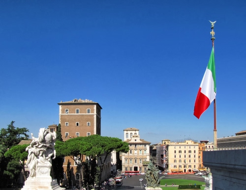 Roma - Bandiera del Vittoriano e sullo sfondo Piazza Venezia