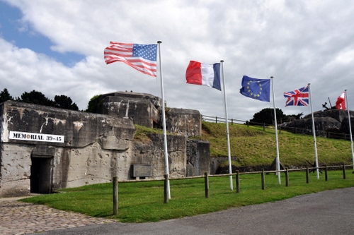 Tag: bandiere, prato, erba, verde, aste, bunker, cielo, nuvole, strada, cemento, alberi, memoriale, pennoni, staccionata, rifugio, rosso, ingresso, guerra, blu, steccato, vento.