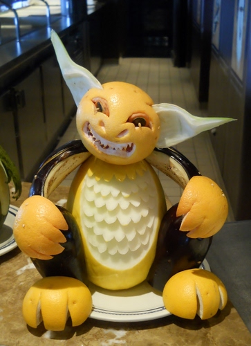 Animale di fantasia fatto con frutta e verdura, ideato, elaborato, confezionato e messo in mostra dagli chef della "Splendida"
