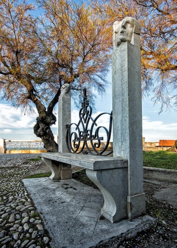 Panchina con sculture a Trani