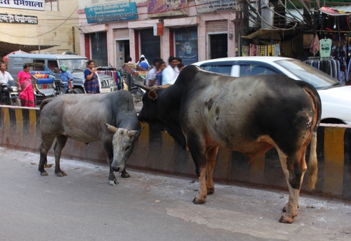 Bovini per la strada a Varanasi (India).