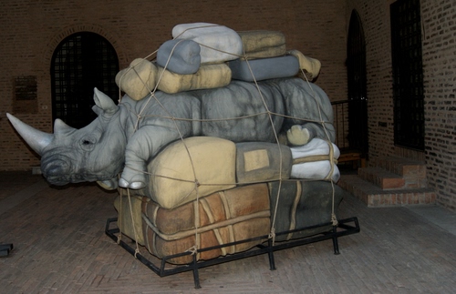 Tag: rinoceronte, corno, corde, grigio, pacchi, materassi, cuscini, porte, portapacchi, corni, scultura, muri, scalini, sacchi, mattoni.