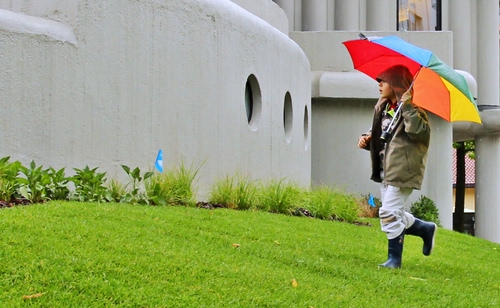ottima, bella compo, l'occhio scorre il frame alla ricerca del soggetto e lo trova alla fine con la sorpresa di quel bell'ombrello colorato |