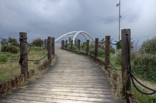 Mi piace molto il contrasto tra la vecchia passerella naturale e il moderno ponte artificiale; poi magari li hanno fatti insieme però l'effetto che mi danno è questo
