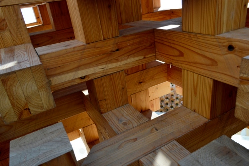 Tag: legno, travi, assi, finestre, marrone, nodi, geometrie, incroci, struttura, luce, incastri, costruzione, geometrico, venature.