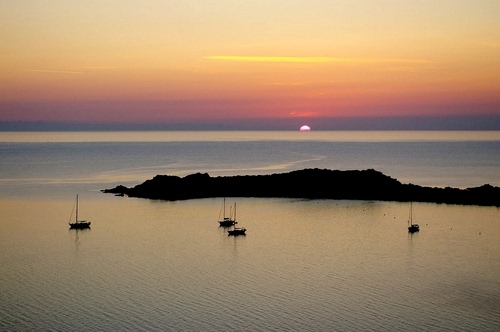 Tag: barche, mare, tramonto, acqua, sole, controluce, penisola.