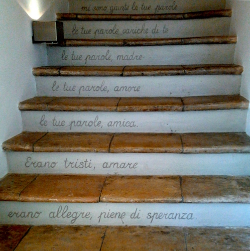 Tag: scala, gradini, parole, scalini, scritte, poesia, mattoni, luce, bianco, scale, frasi, lettere.