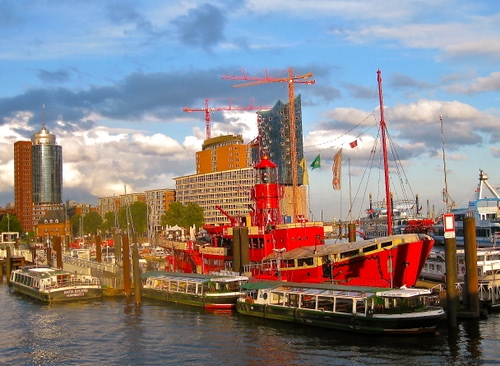 Il colore della barca risalta in modo determinante nell'intero contesto del porto e fa sì che la barca richiami immediatamente l'attenzione di chi guarda .