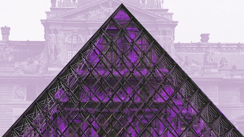 Foto dell'autore MV03041951 candidata al contest fotografico triangolo su Dizy. Data inserimento: mercoledì 16 maggio 2018. Titolo: Piramide del Louvre in viola