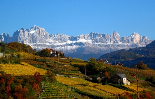 Altri tag (senza riscontro): casa, strade, catinaccio, tetti, casi, pali, uva, collina, pendio, coltivazione, vigna, coltivazioni, vette, dolomiti, casolare.