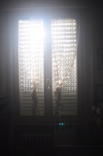 Nella stanza in penombra del mio studio, penetra attraverso la tenda che fa da diffusore, un raggio di luce.