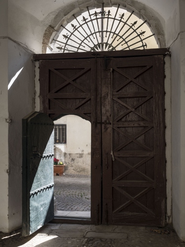 Tag: porta, portone, strada, arco, legno, ics, luce, finestra, aperta, verde, fiori, marrone, archi, entrata, vaso.