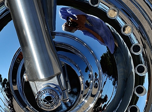 Quando casualmente ho visto l'immagine riflessa dal cerchione della ruota della moto, ho pensato che potevo trarne una bella foto.