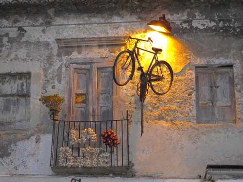 Tag: bicicletta, cipolle, balcone, luce, lampione, aglio, porta, vaso, ringhiera, finestre, agli, muro, finestra, ruote, casa, pianta, fiori, appesa, imposte.