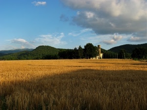 Campo di grano con chiesa