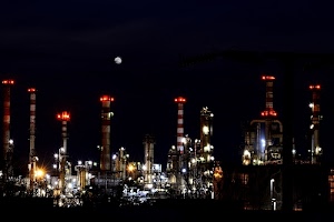 ciminiere della raffineria di notte