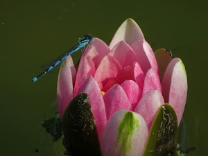 Libellula celeste ninfea rosa