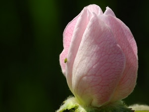 518° Fiore di melo cotogno con minuscolo parassita