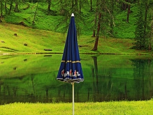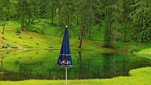 Ombrello sulla riva di laghetto alpino