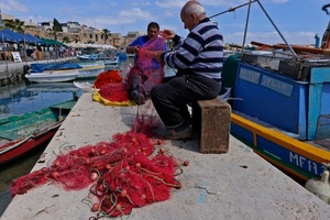 pescatore che aggiusta la lenza