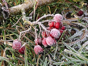 Bacche di biancospino con brina