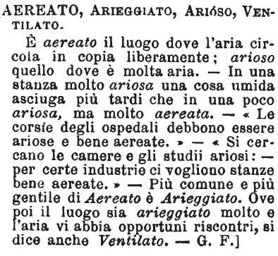 | Parole contenute in "arieggiato" |