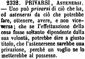 | Usando "astenersi" (*) si possono ottenere i seguenti risultati: * misi = astenermi; * tisi = astenerti; * visi = astenervi. |