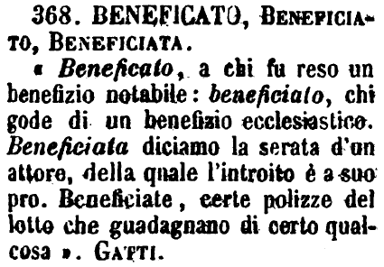 | Parole contenute in "beneficiato" |
