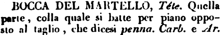 | Bocca del martello - Téte. Quella parte, colla quale si batte per piano opposto al taglio, che dicesi penna. Carb. e Ar. [immagine] |