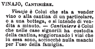 Cantiniere, Canovaio, Vinaio - «Il cantiniere ha cura della cantina; il canovaio sta a vendere il vino». Tommaseo.