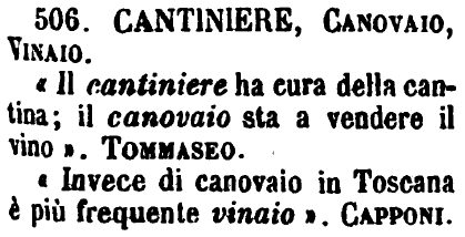 «Invece di canovaio in Toscana è più frequente vinaio». Capponi. [immagine]